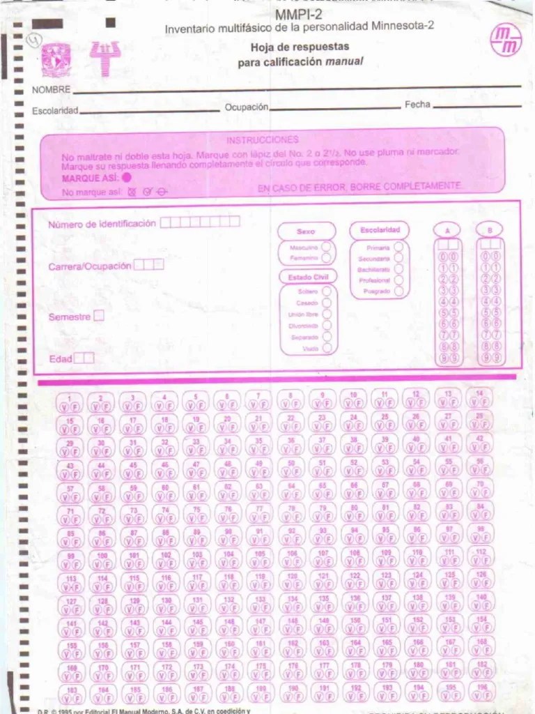 Tes mmpi online ini, merujuk pada skala adaptasi versi depkes. Mmpi adalah singkatan dari minnesota multiphasic personality inventory. Tes mmpi adalah software yang membantu memudahkan prosedur anda dalam melakukan administrasi maupun skoring hasil psikotest. Take the mmpi online | learn how to analyze your results and the right answers with our mmpi answers cheat sheet. The psychological corporation nueva york 1967 adaptación argentina.