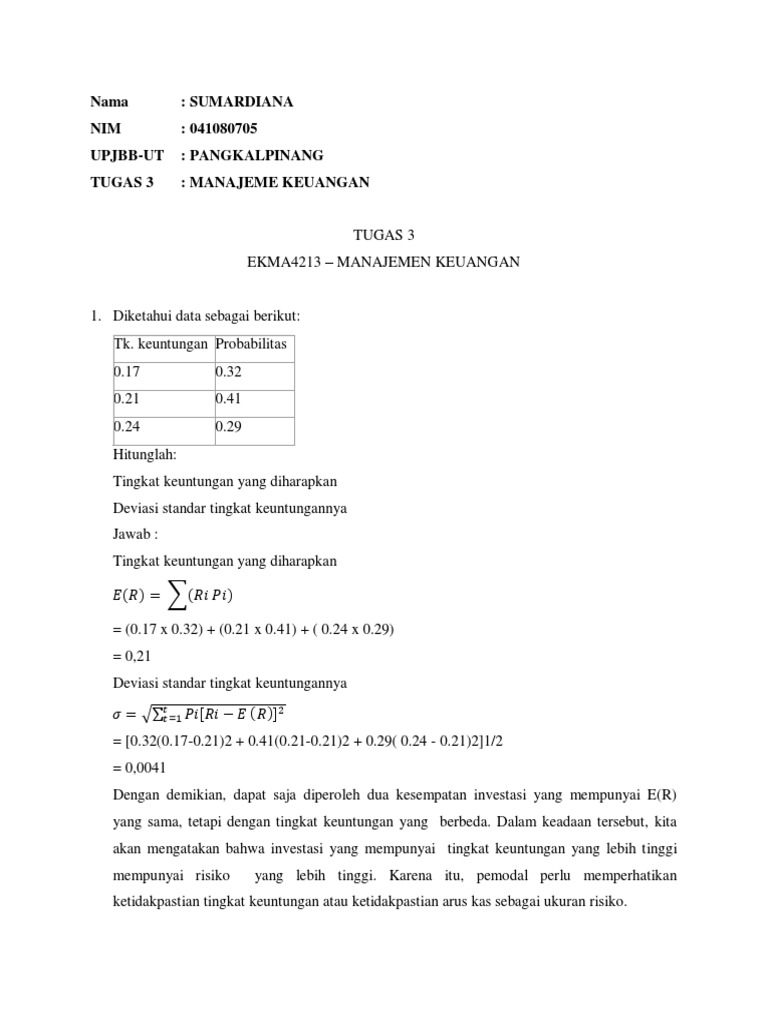 Ikatan alumni universitas terbuka jakarta ekma4414. Nama nim upbjj/ut dosen / Mengenal manajemen strategik 3 cetakan pertama 2016 diterbitkan oleh fakultas ilmu sosial dan ilmu politik. Manajemen keuangan tugas 2 pt. Petualang mengirimkan 2 macam check setiap 10 hari, yaitu :